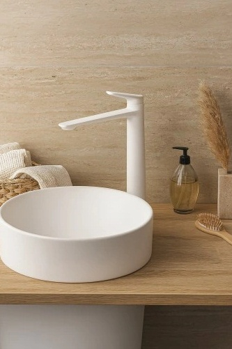 Culoarea alba mata confera un aer proaspat si luminos baii, fiind o alternativa moderna la bateriile cromate clasice. Acest finisaj este placut la atingere, rezistent la urmele de apa si usor de intretinut. Se potriveste perfect in bai amenajate in stil scandinav, minimalist sau modern urban.
