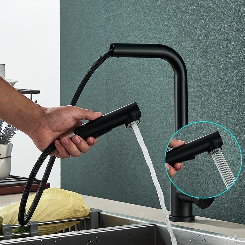 Desi vine cu un design clasic, aduce si funcionalitati moderne cum ar fi dusul extractibil si cele doua variante de jet. Ofera un aspect elegant, potrivindu-se perfect intr-un decor vintage, dar nu numai. Dusul extractibil va permite sa faceti miscari ample si poate fi folosit in diverse situatii. Finisajul premium multistrat va atrage toate privirile. Culoarea negru mat cu muchii bronz va da un plus de eleganta bucatariei dumneavoastra.